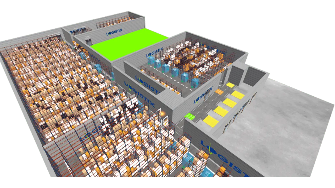 Test multiple warehouse layouts and flow strategies to maximize space usage, reduce travel time, and boost throughput—without the cost of physical rearrangement.